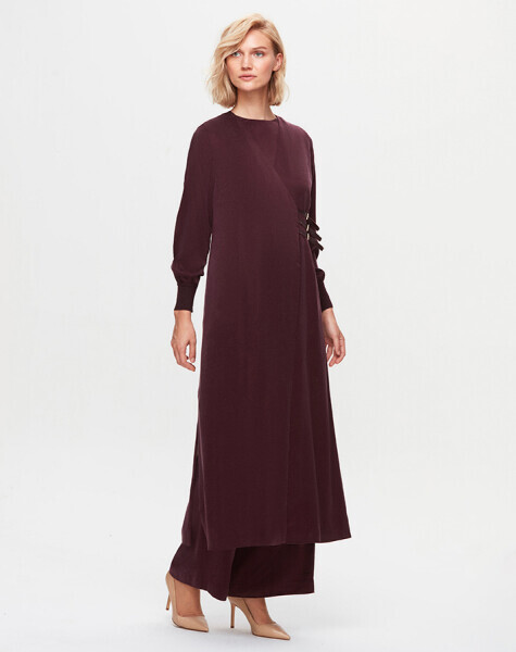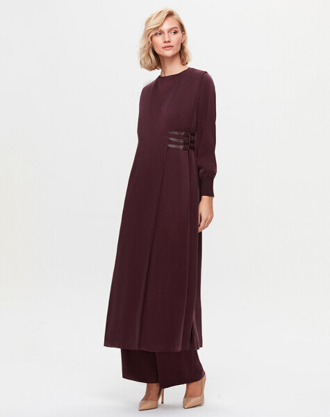 T25K-1004 Deri Kemer Detaylı CuproYelek OUBERGINE