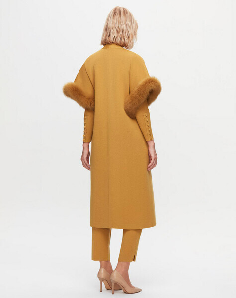 T25K-1007 Kolu Kürk Detaylı Yelek COMO-CAMEL