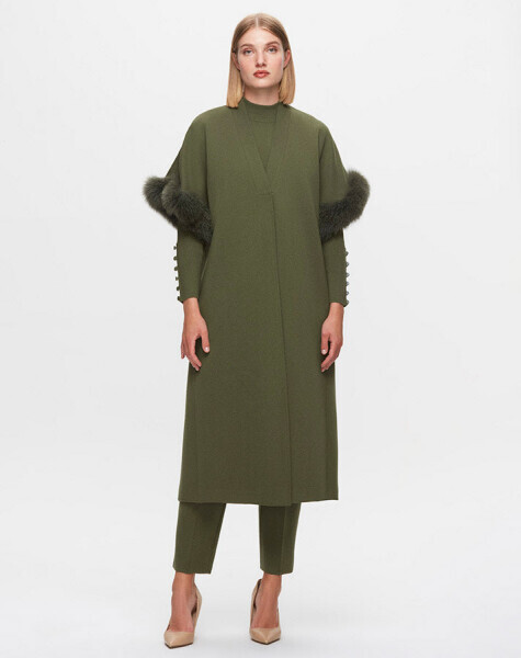 T25K-1007 Kolu Kürk Detaylı Yelek FARAD-GREEN