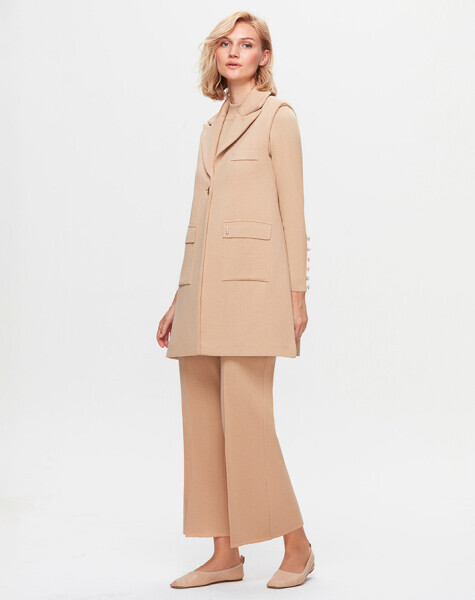 T25K-1008 Vatkalı Triko Yelek DIDO-BEİGE