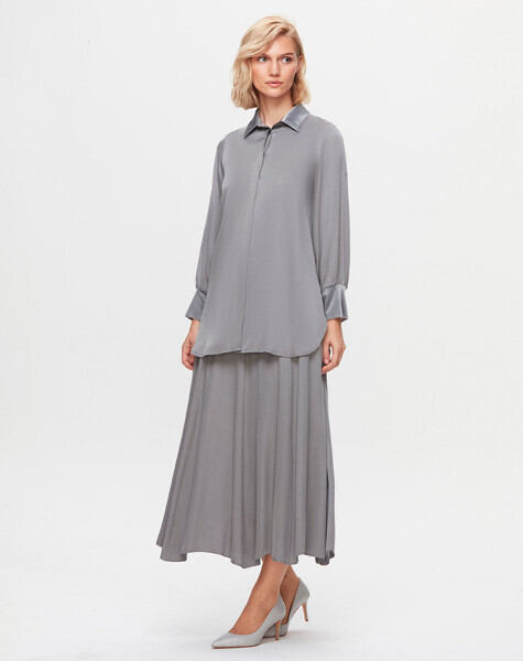 T25K-2005 Cupro Kloş Etek VİALE-GREY