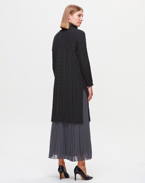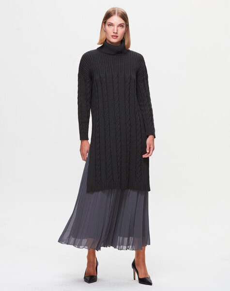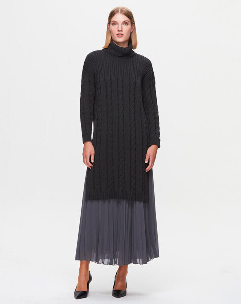 T24Y-4000 Etek Ucu ve Bileği Fırfırlı Triko Elbise 1245-STONE