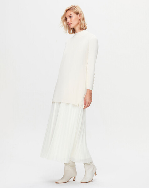 T25K-2009 Plise Şifon Etek FEDE-ECRU
