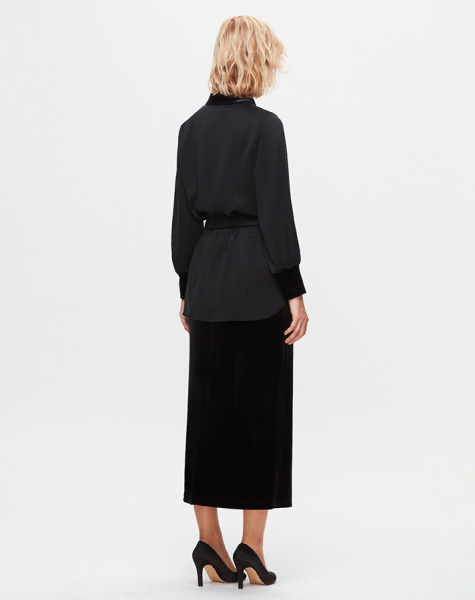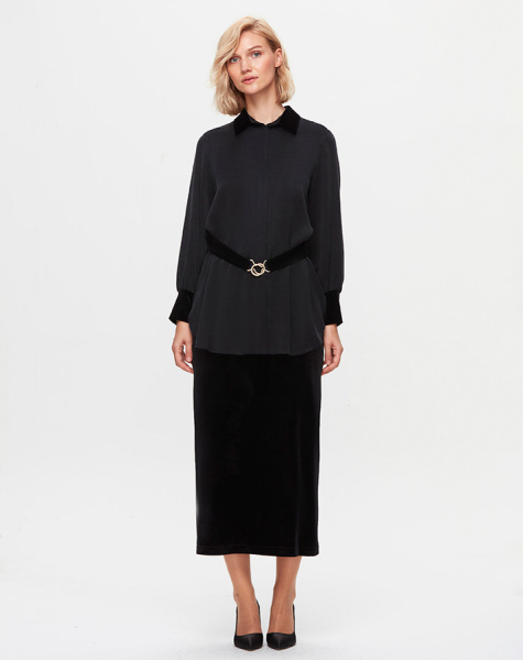 T25K-3003 Kadife Detaylı Gömlek BLACK