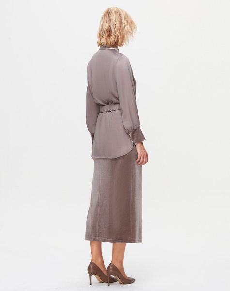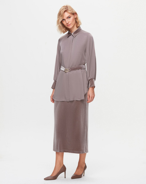 T25K-3003 Kadife Detaylı Gömlek GREY