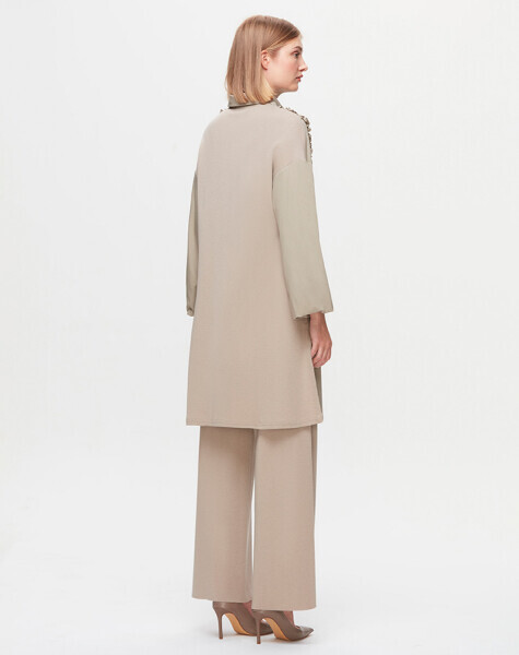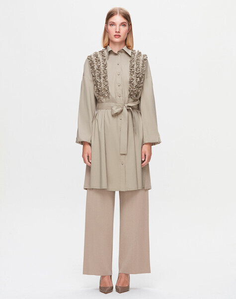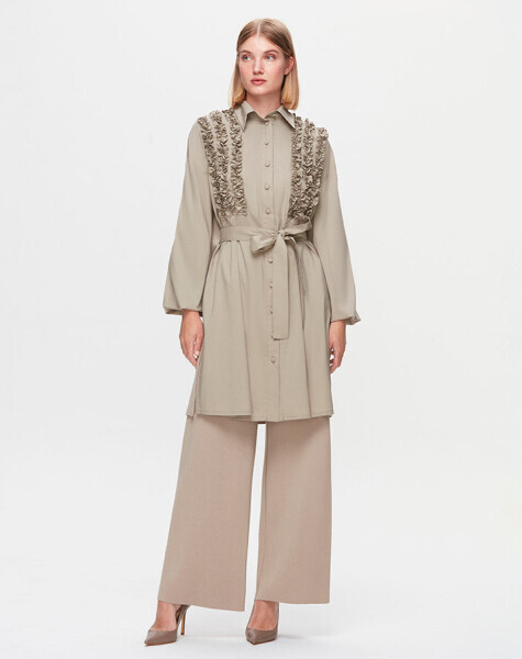 T25K-3005 Önü Büzgü Detaylı Poplin Gömlek 8YR71-STONE