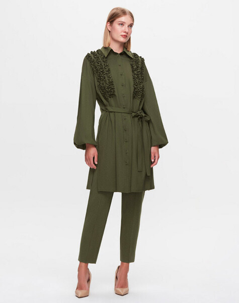 T25K-3005 Önü Büzgü Detaylı Poplin Gömlek FARAD-GREEN