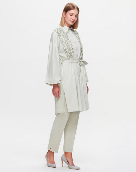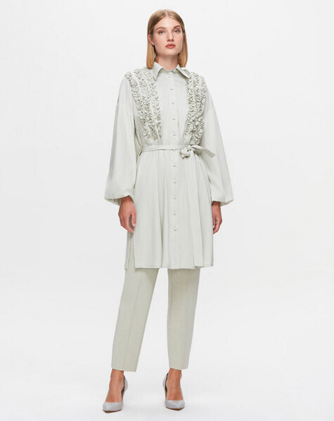 T25K-3005 Önü Büzgü Detaylı Poplin Gömlek FONIA-RIVER