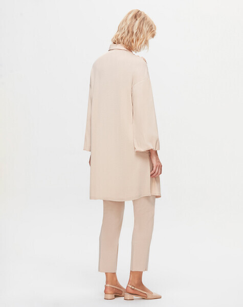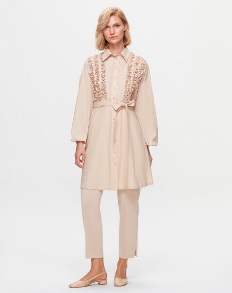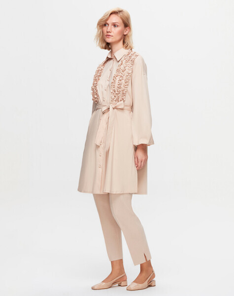T25K-3005 Önü Büzgü Detaylı Poplin Gömlek YR23T-SAND