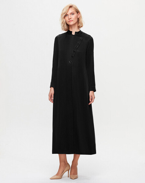 T25K-4001 Renkli Düğmeli Cupro Elbise BLACK