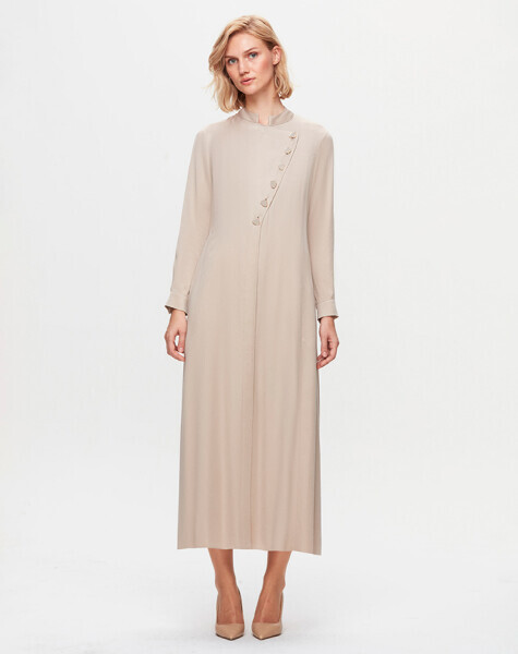 T25K-4001 Renkli Düğmeli Cupro Elbise STONE
