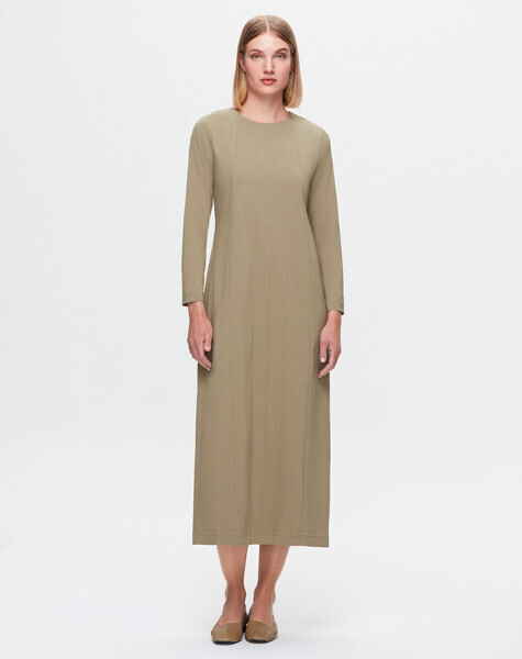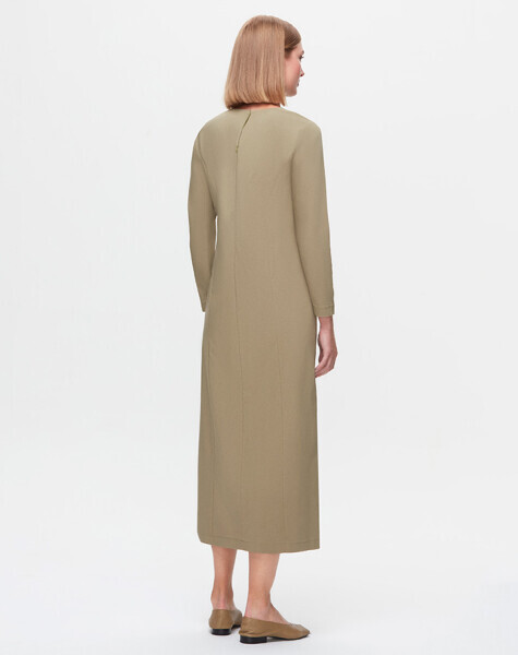 T25K-4003 Uzun Kollu Kumaş Elbise GREEN