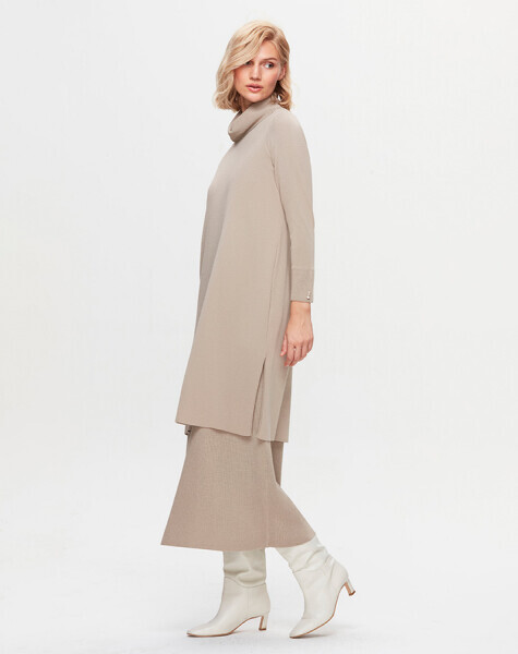 T25K-4004 Boğazlı Yaka Uzun Elbise 8YR71-STONE