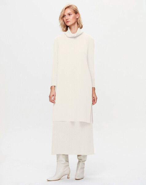 T25K-4004 Boğazlı Yaka Uzun Elbise FEDE-ECRU