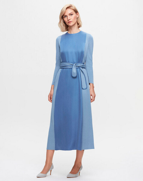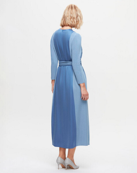 T25K-4005 Beli Kuşaklı Cupro Detaylı Elbise PB13E-BLUE
