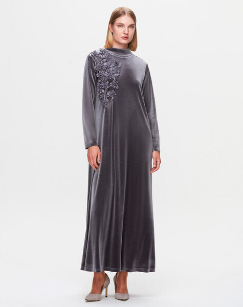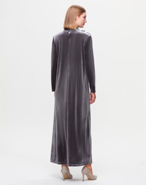 T25K-4007 A Kesim Kadife Elbise GREY