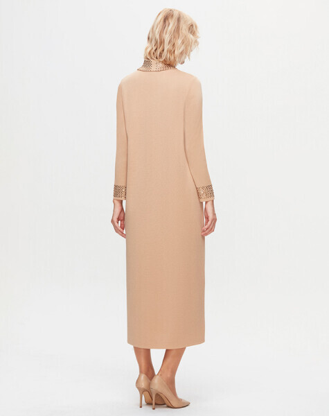 T25K-4008 Yakası ve Bileği Taş Detaylı Elbise YY216-BEİGE