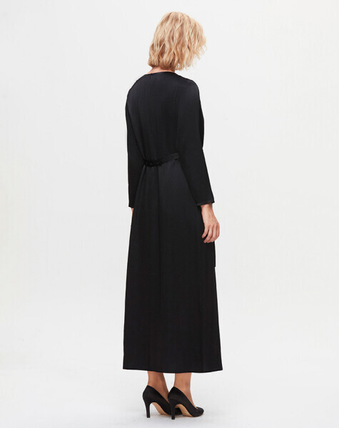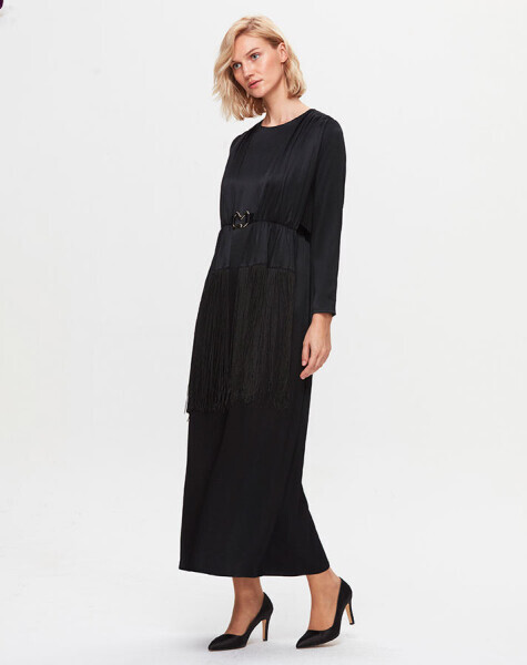 T25K-4009 Püskül Detaylı Parlak Kumaş Elbise BLACK