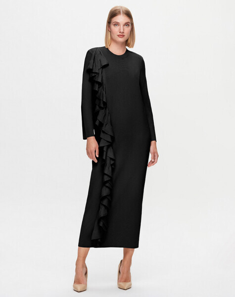 T25K-4010 Önü Fırfırlı Triko Elbise BLACK