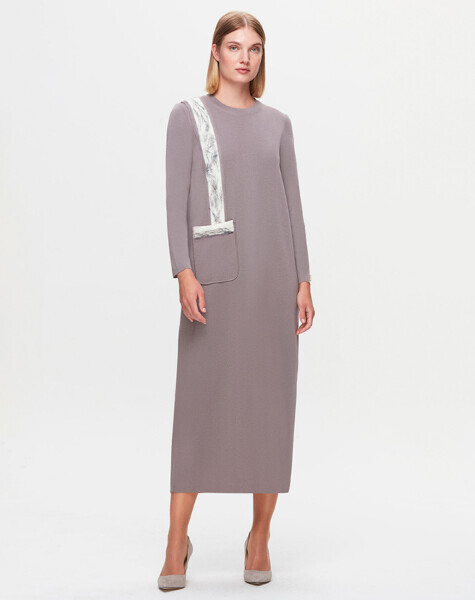 T25K-4011 Cebi ve Önü Keçe Detaylı Elbise VİALE-GREY