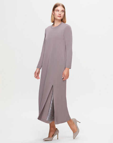 T25K-4002 Dik Yaka Cupro Elbise GREY