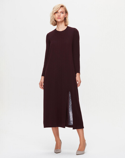 T25K-4012 Yırtmacı Taş Detaylı Elbise TROTA-OUBERGİNE