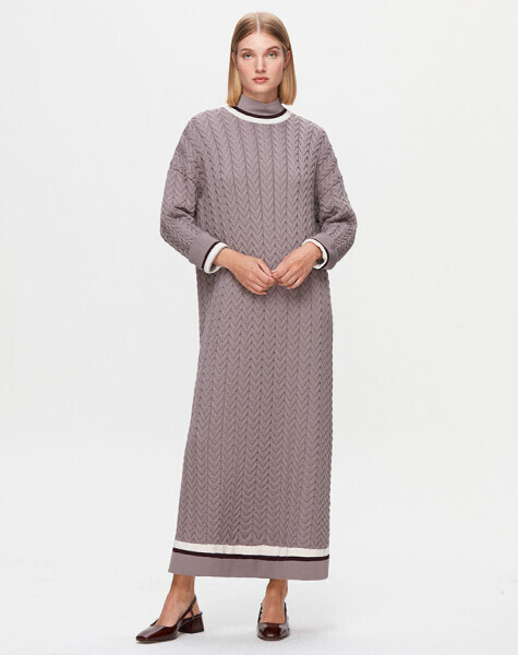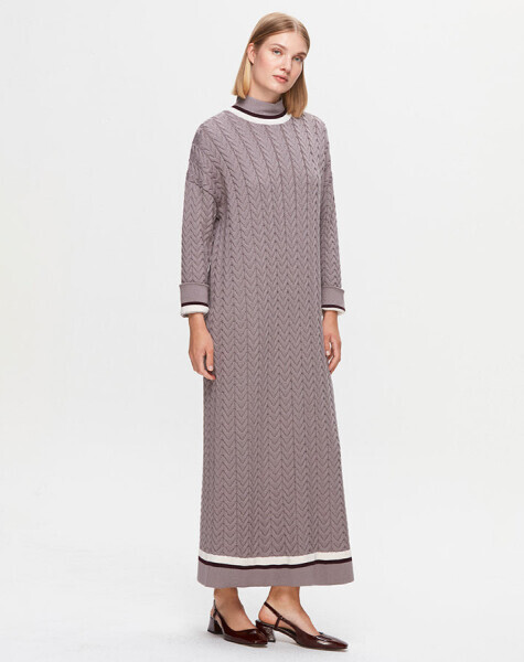 T25K-4018 Saç Örgülü Triko Elbise SCURE-MİNK