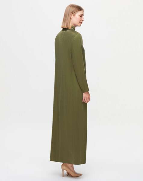 T25K-4019 Broş Detaylı Cupro Uzun Elbise GREEN