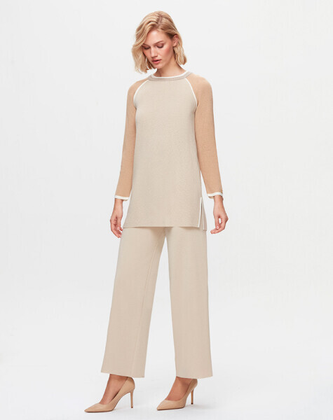 T25K-6007 Kolları Renkli Selanik Tunik YR23T-SAND