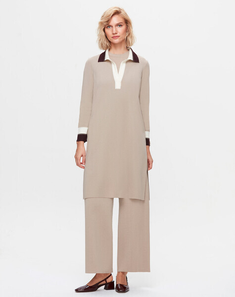T25K-6009 Gömlek Yaka Triko İçli Tunik 8YR71-STONE