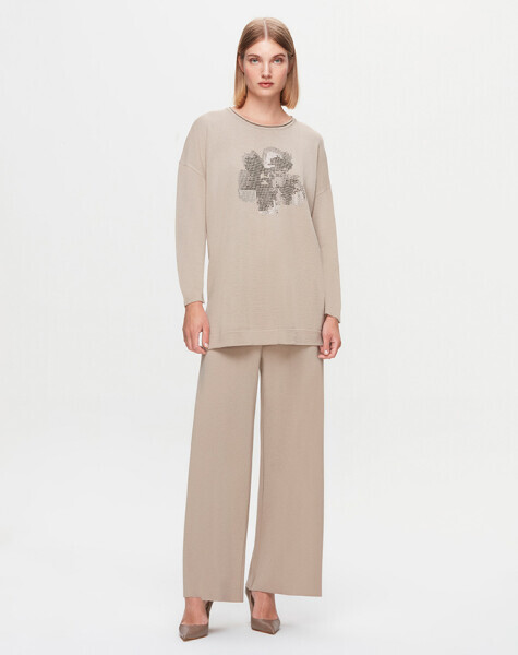 Önü Taşlı Gül Desenli Tiko FONIA-Gri Tunik