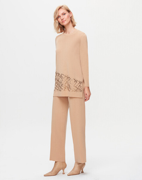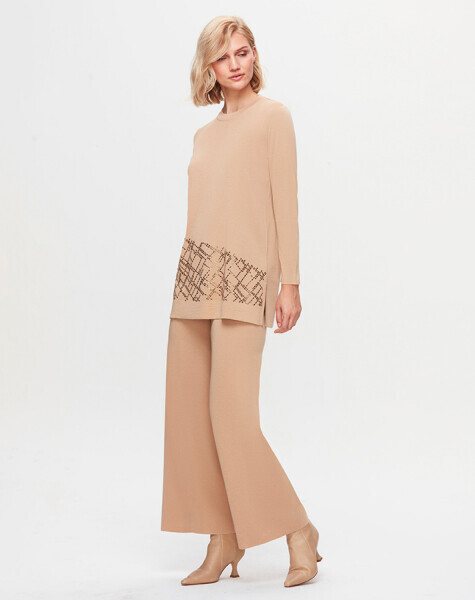 T25K-6012 Taş Detaylı Triko Tunik DIDO-BEİGE