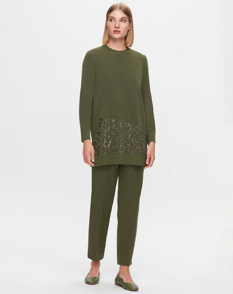 T25K-6012 Taş Detaylı Triko Tunik FARAD-GREEN