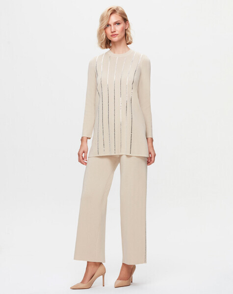 T25K-6013 Önü Taş Şertili Triko Tunik FEDE-ECRU