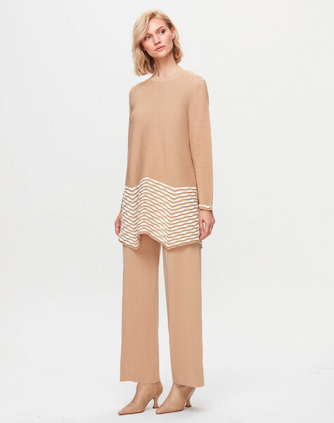 T25K-6016 Ucu Dilim Detaylı Asimetrik Tunik DIDO-BEİGE