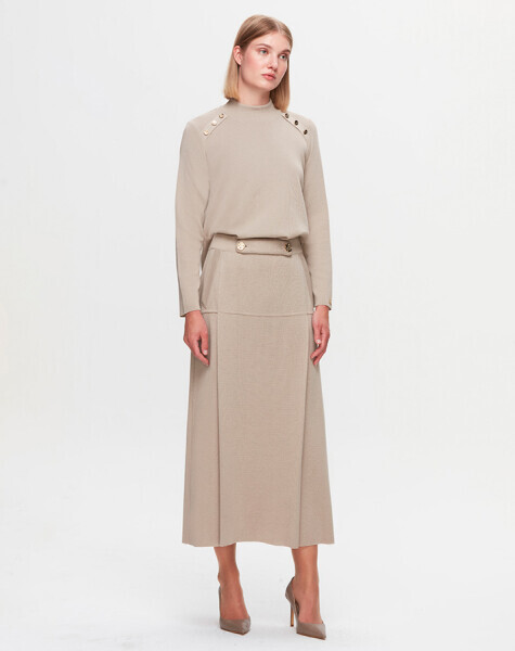 T25K-6018 Önü Düğme Detaylı Triko Tunik 8YR71-STONE