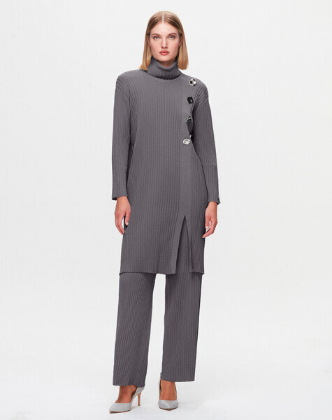 T25K-6019 Kalın Fitilli Renkli Düğmeli Triko Tunik SCURE-MİNK