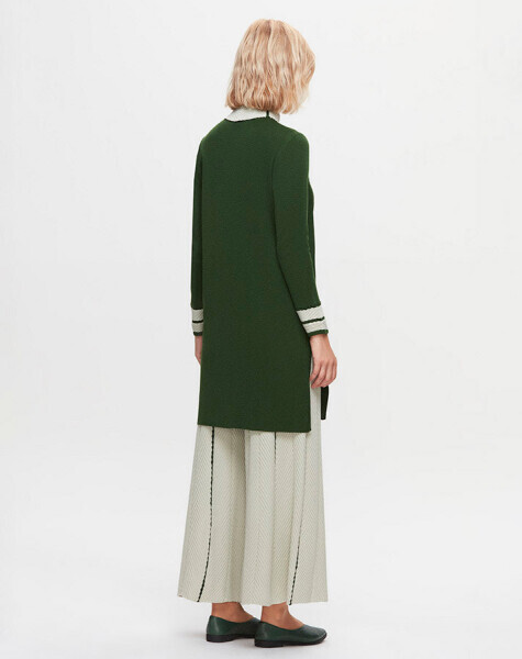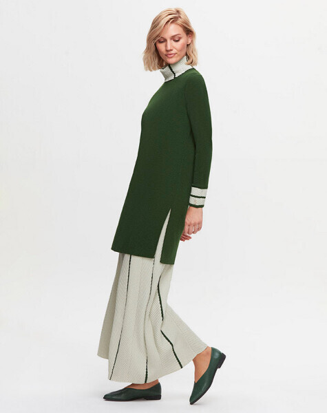 T25K-6025 Yakası ve Bileği Örgü Teknikli Uzun Tunik FOTO-EMERALD