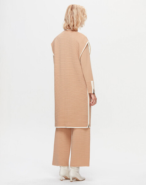 T25K-6026 Yakası ve Bileği Bekletme Detaylı Tunik DIDO-BEİGE