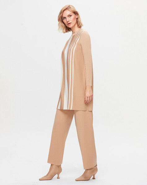 T25K-6031 Renk Şeritli Triko Tunik DIDO-BEİGE