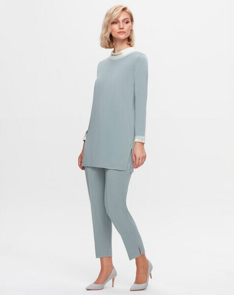 T25K-6032 Yakası ve Bileği Keçe Detaylı Tiko Tunik MANİA-RESEDA