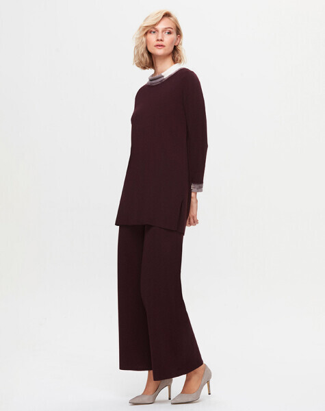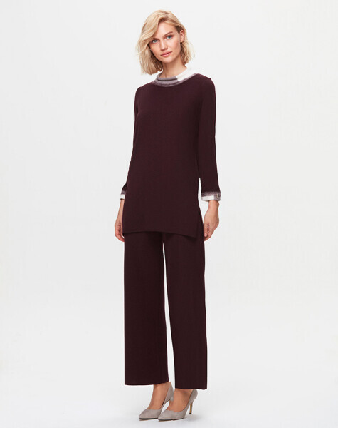 T25K-6032 Yakası ve Bileği Keçe Detaylı Tiko Tunik TROTA-OUBERGİNE