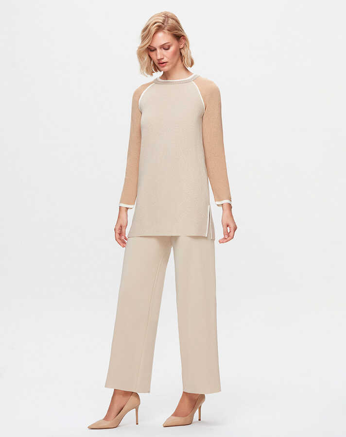 T25K-7001 Bol Paça Triko Pantolon YY216-BEİGE