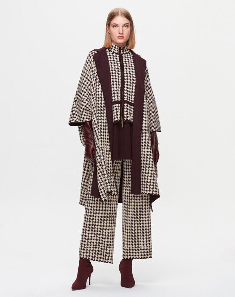 T25K-7002 Piyedepul Desenli Bol Paça Triko Pantolon TROTA-OUBERGİNE