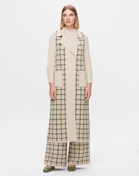 T25K-7003 Kazayağı Desenli Bol Paça Pantolon YY216-BEİGE