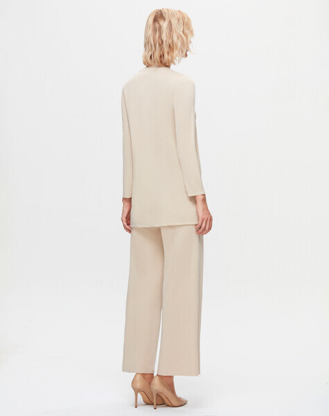 T25K-7006 Yanları Şerit Taşlı Bol Paça Pantolon FEDE-ECRU
