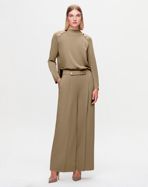 T25K-7010 Düğme Detaylı Bol Paça Pantolon DIDO-BEİGE
