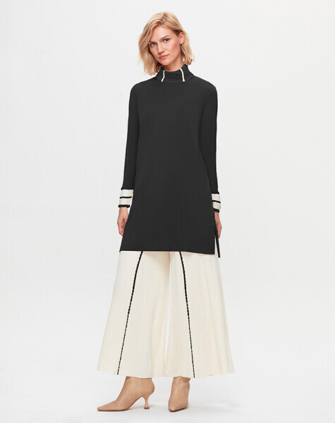 T25K-7012 Örgü Teknikli Bol Paça Triko Pantolon BLACK