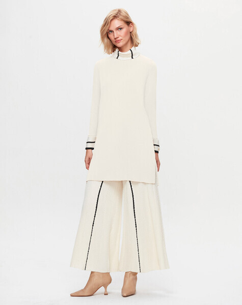 T25K-7012 Örgü Teknikli Bol Paça Triko Pantolon YY872-BONE