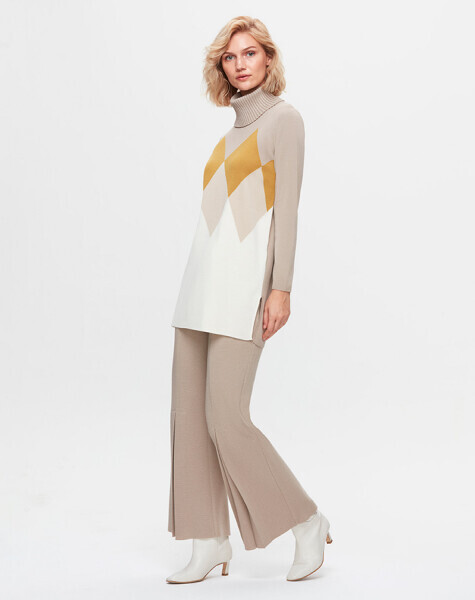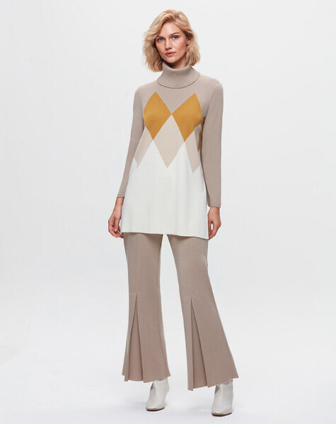 T25K-7014 Önü İspanyolon Kesim Bol Paça Pantolon 8YR71-STONE